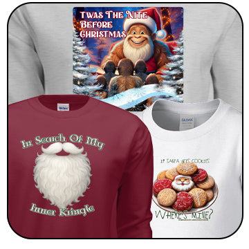 Christmas Is For The Kid In All Of Us. We Have Original, Unique Holiday Art, Traditional, Christian and of Course, A Few Bigfoot Items. We Offer A Wide Variety Of Sizes and Colors of T-Shirts, Hoodies for Adults and Kids Plus We Have Infant Wear. Merry Christmas From All Of Us At T-Shirts Make Us Happy!