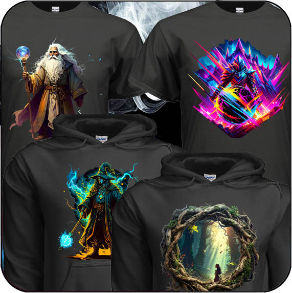 Our collection is a celebration of all things enchanting and epic. We pour our passion for fantasy, the wisdom of wizards, the majesty of dragons, the grandeur of castles, and the allure of countless other mythical realms into every design we create. These unique visions are then brought to life on quality T-shirts and hoodies, crafted to be comfortable and durable for both adults and kids who share our love for adventure and imagination.